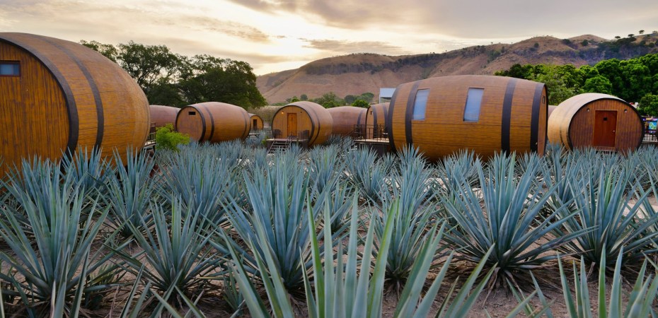 Ubicado en el hermoso Pueblo Mágico de Tequila, es el único hotel dentro de una fábrica tequilera con peculiares habitaciones en forma de barrica, rodeadas de un campo agavero.