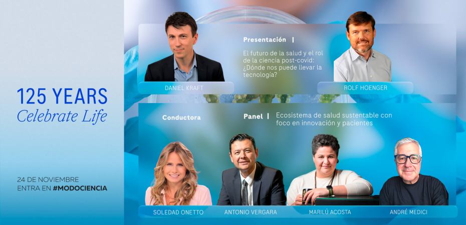 En el evento, y con motivo del 125° aniversario de Roche, Daniel Kraft expuso sobre cómo la tecnología determinará el futuro de la Salud de aquí a los próximos años. En el lugar también estuvo presente Rolf Hoenger, Area Head de Roche Pharma para Latinoamérica; Marilú Acosta, magíster en Salud Pública y Promoción de la Salud por el Instituto Henri Poincaré en Francia; André Medici, economista social y de Salud internacional en Washington DC; y Antonio Vergara, Area Head de Roche Diagnóstica para América Latina.