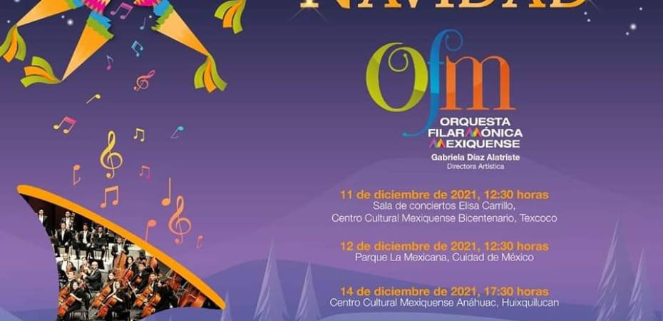 El concierto navideño de la OFM también se presentará el domingo 12 de diciembre en el parque “La Mexicana”, en la Ciudad de México, y el 14 de diciembre en el Centro Cultural Mexiquense Anáhuac, en Huixquilucan.