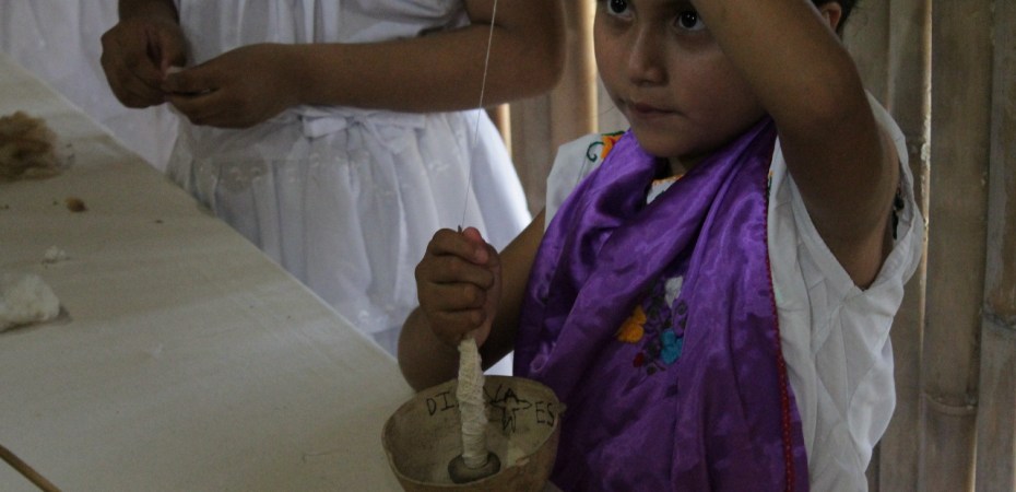 Durante todo el año, niñas y mujeres aprenden de las bordadoras la transformación de la planta en hilo y culmina en la confección de alguna prenda con bordados prehispánicos y el teñido de hilo con diversos tintes naturales de la región.