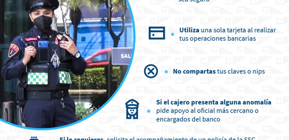 La Secretaría de Seguridad Ciudadana (SSC) de la Ciudad de México, en el marco de las fiestas de fin de año, emite una serie de recomendaciones y medidas de seguridad, con la finalidad de evitar los riesgos a los que se puede exponer la ciudadanía al momento de realizar alguna operación bancaria o cuando se utilice el servicio de cajeros automáticos.
