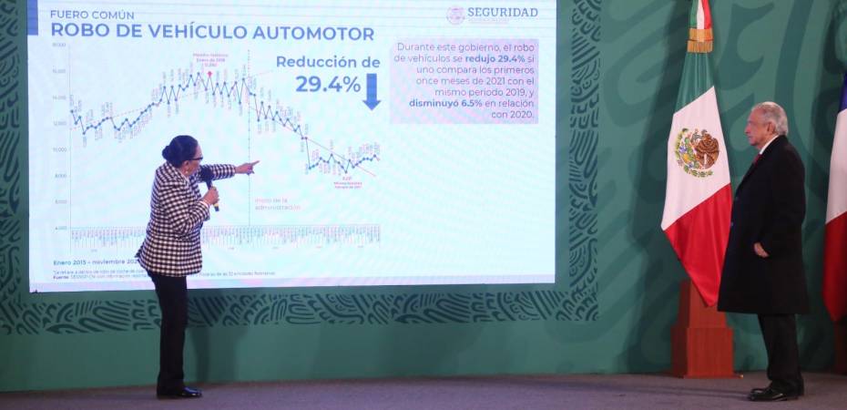 Durante la presentación del informe mensual del Gabinete de Seguridad Nacional, en el marco de la conferencia matutina del presidente Andrés Manuel López Obrador, la funcionaria precisó que el homicidio doloso, uno de los delitos que más preocupan, registra una reducción de 3.8 por ciento.