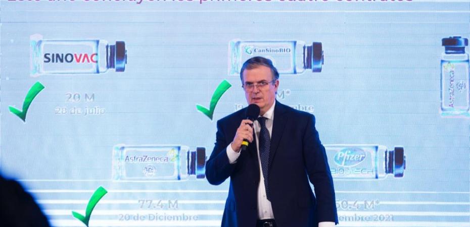el secretario de Relaciones Exteriores, Marcelo Ebrard Casaubon, presentó los logros de la estrategia instruida por el presidente de la República: a un año de la llegada del primer cargamento, más de 195 millones de dosis de vacunas han llegado a nuestro país y 347, 434 dosis de vacunas se han aplicado en colaboración con los consulados de México en Estados Unidos.