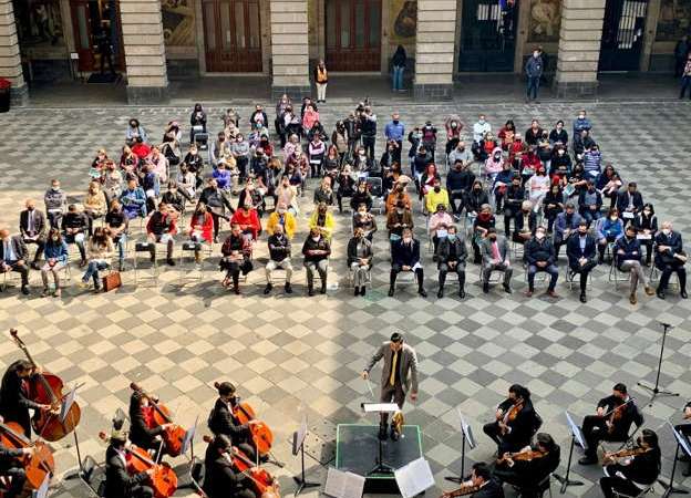 En el Patio del Trabajo, y en presencia de la secretaria de Educación Pública, Delfina Gómez Álvarez, el concierto abrió con la interpretación del Canon de Pachelbel y una suite del Cascanueces, materializando el esfuerzo de tres meses de ensayos.
