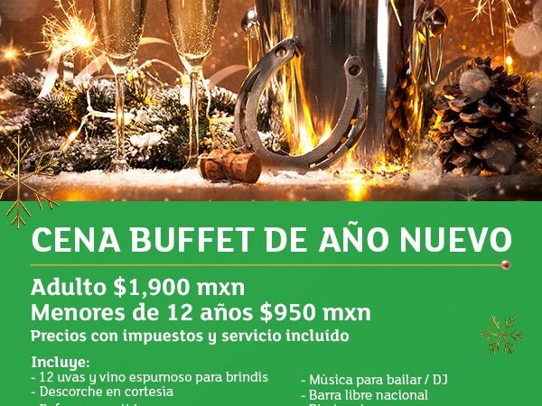 Holiday Inn Acapulco La Isla, contará con una cena Buffet que incluye 12 uvas y vino espumosos para brindis y descorche de cortesía, música con DJ para bailar, barra libre nacional y pirotecnia, con un costo de $1,900 pesos por adulto y $950 pesos por menor de 12 años; todo iniciará en punto de las 20:00 hrs. en el restaurante y terraza Ten. A continuación, el menú: