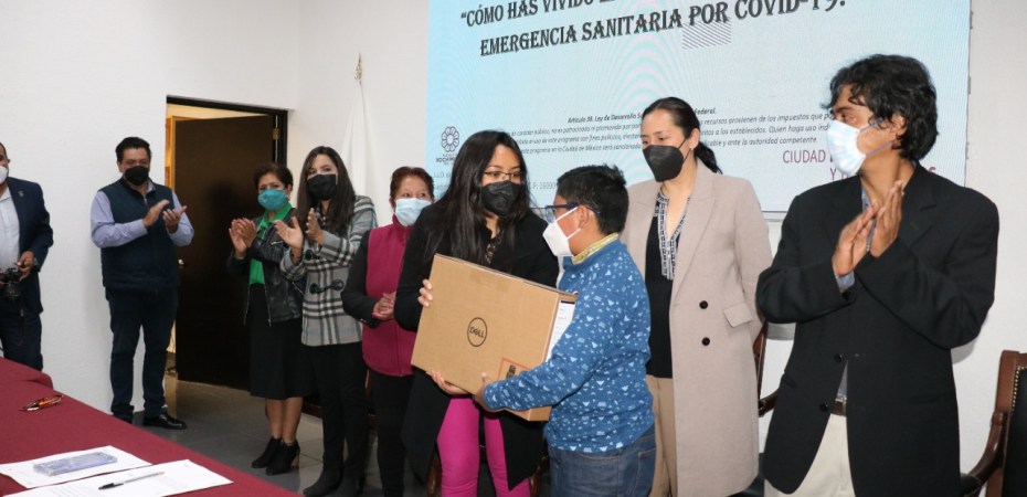 La Alcaldía Xochimilco entregó computadoras portátiles a 16 menores que participaron en el concurso “Cómo has vivido la escuela en tiempos de emergencia sanitaria por COVID-19” organizado para conocer el socioemocional del sector infantil.
