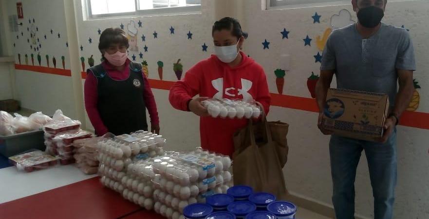 De forma complementaria a la entrega de los paquetes alimentarios, los padres recibieron orientación de cómo balancear cada comida, ya que cada paquete contenía productos de origen animal como leche, huevo, pescado, granos, semillas, embutidos, frutas y verduras.