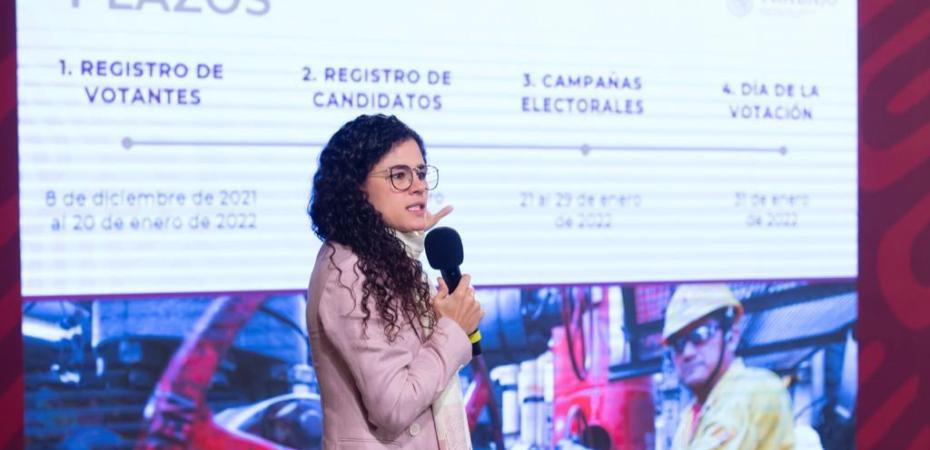 En su participación detalló las 4 etapas que integran la elección: la primera, consiste en el registro de votantes, que concluye el 20 de enero. Es el mecanismo a través del cual se recaba el correo electrónico y el número celular de los trabajadores, “este proceso nos da certeza de que el trabajador que se registra brinda sus datos actualizados y tiene el derecho a votar”. Luisa Alcalde hizo un llamado a las y los trabajadores que pertenecen al sindicato que no se han registrado para que lo hagan, “tienen hasta el 20 de este mes”.