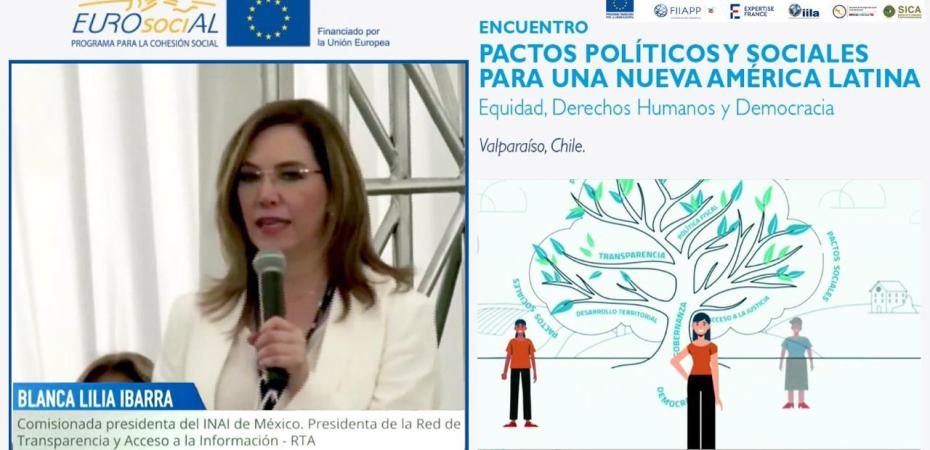 “Consideramos que el respeto al ejercicio de las libertades y los derechos humanos debe estar por encima de cualquier intento de menoscabarlos; es una agenda prioritaria”, sostuvo la también Presidenta de la Red de Transparencia y Acceso a la Información (RTA), en el evento convocado por EUROsociAL+, Programa de Cooperación de la Unión Europea con América Latina, con el fin de analizar y discutir los pactos sociales necesarios para la recuperación sostenible de la región postpandemia.