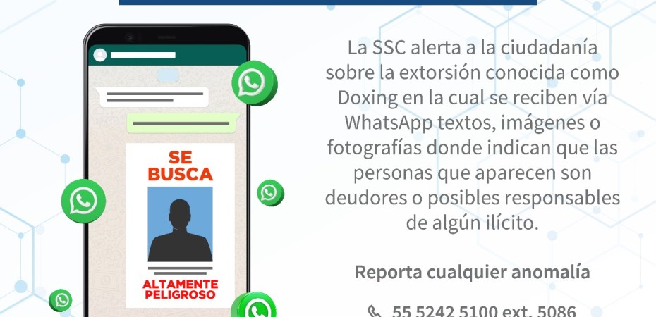 La Unidad de Policía Cibernética de la Secretaría de Seguridad Ciudadana (SSC) de la Ciudad de México, alerta a la ciudadanía sobre mensajes que se reciben vía mensajería instantánea con imágenes con contenido inapropiado y textos en los que argumentan que las personas que aparecen en las fotografías, son deudores de préstamos o que cometieron algún ilícito.