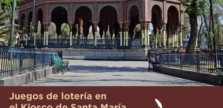 el programa Paseos Históricos, iniciativa de la Secretaría de Cultura de la Ciudad de México que busca divulgar el patrimonio cultural de la capital, a través de visitas guiadas gratuitas que se realizan los domingos, llevará a cabo el recorrido “Juegos de lotería en el kiosco de Santa María”.