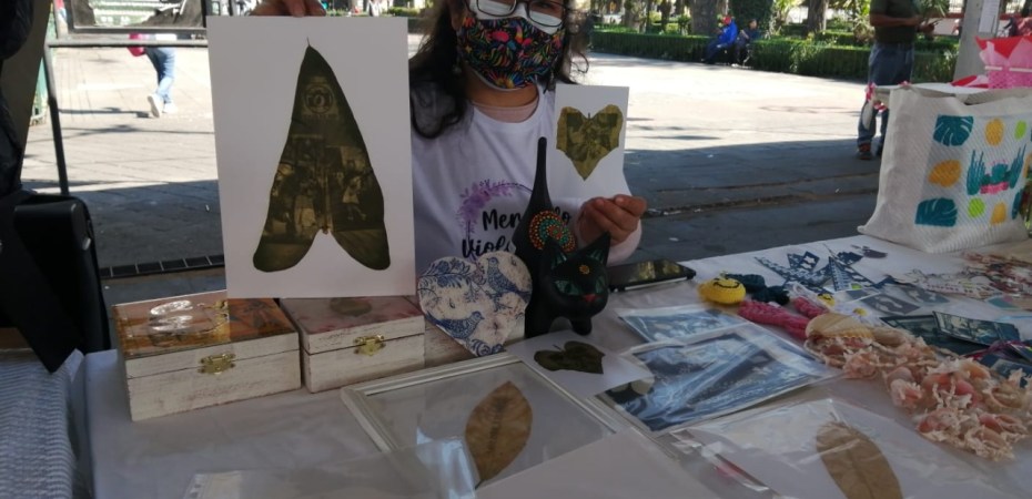 “Ahorita estamos vendiendo clorotipias y cianotipias; la florotipia viene de una técnica experimental, que es la impresión de una imagen en hoja natural de acuerdo a la reacción del sol”, apunta.
