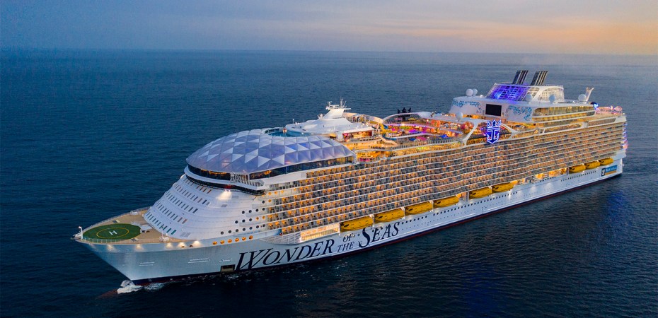 El Wonder of the Seas tiene capacidad para 6,998 pasajeros, 2,300 tripulantes y casi tres mil camarotes. Además, ofrece 18 cubiertas en las que encontramos opciones de esparcimiento y diversión incluyendo 20 restaurantes y 35 bares.