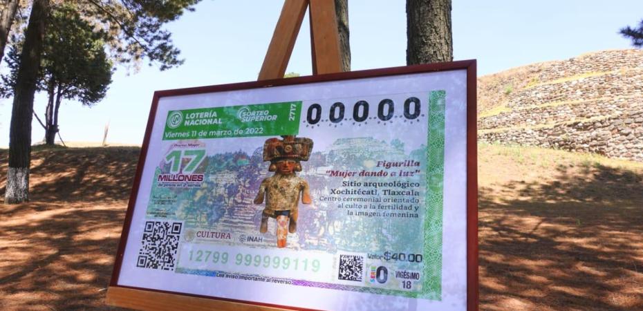 La Secretaría de Cultura federal, a través del Instituto Nacional de Antropología e Historia (INAH), en conjunto con la Lotería Nacional y el Gobierno del estado de Tlaxcala develaron el billete del Sorteo Superior No. 2717, conmemorativo al Día Internacional de la Mujer, el cual muestra a una figura prehispánica dando a luz y de fondo, a la Zona Arqueológica de Xochitécatl.