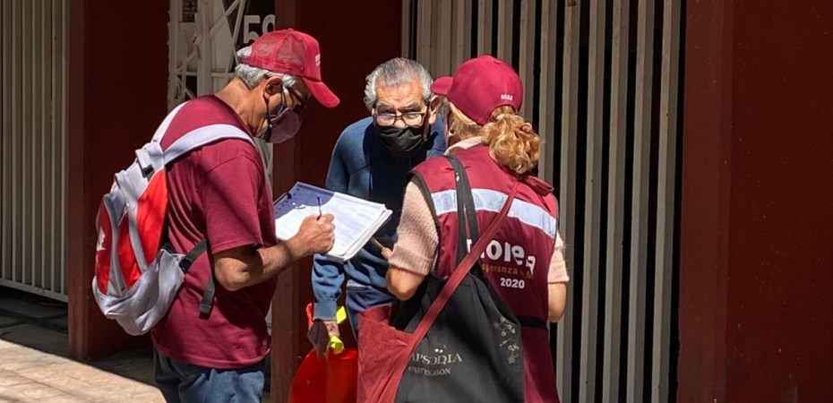 Los Siervos de la Nación, a través de visitas domiciliarias y/o vía telefónica, tienen la encomienda gubernamental para entrevistarse con jóvenes que reciben becas y personas de la tercera edad de 65 años y más, para “aconsejarlos” que el domingo 10 de abril deberán acudir a votar para “ratificar” a López Obrador como Presidente de la República.