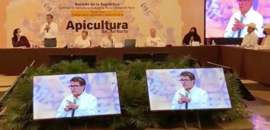 Durante su participación en el foro, en el que se analizaron las iniciativas para expedir una legislación para el desarrollo de la apicultura, Ricardo Monreal refrendó su compromiso para no aprobar ninguna ley, sin el consentimiento de las y los apicultores.