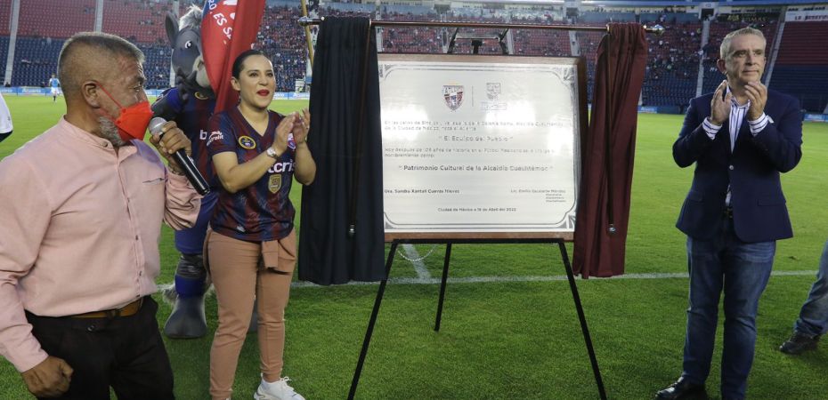 La Alcaldesa Sandra Cuevas declaró al equipo de Futbol Atlante como: “Patrimonio Cultural” de la Alcaldía Cuauhtémoc en el marco de la develación de la placa conmemorativa por los 106 años de fundación del club azulgrana en compañía del propietario de los Potros de Hierro, Emilio Escalante.