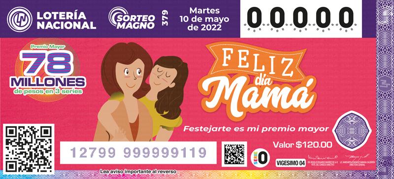 La Lotería Nacional festeja a las mamás mexicanas con el billete del Sorteo Magno No. 379, que nos recuerda la importancia de la labor que todas ellas realizan, mujeres que con esfuerzo y dedicación consolidan los hogares mexicanos.