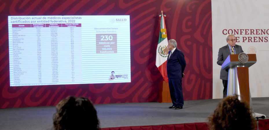 En la actualidad existen 135 mil 046 especialistas certificados, equivalente a 107.2 por cada 100 mil habitantes, en tanto que la recomendación es de 230 por cada 100 mil; es decir, se requieren 154 mil 786 para alcanzar las recomendaciones internacionales, afirmó el secretario de Salud, Jorge Alcocer Varela.