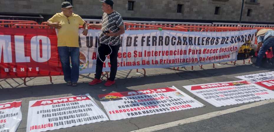 En un plantón frente al Zócalo desde muy temprano se reunieron los ex ferrocarrileros de estados como Veracruz, Chihuahua, Sonora, Sinaloa y Jalisco, entre otros, con el fin de pedir un avance al anuncio hecho recientemente por el mandatario de resarcir una deuda histórica que se tiene con miles de ex trabajadores del riel.