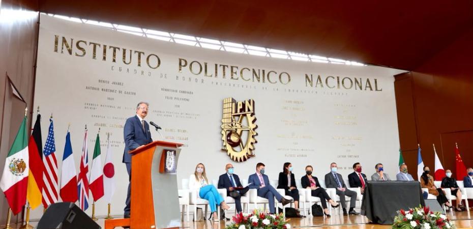 Mencionó los esfuerzos realizados por el IPN para posicionarse ante el mundo, como la instalación del Comité de Internacionalización y la consolidación de alianzas con Queen Mary University of London, la Universidad de California y el Instituto Real de Tecnología del Reino de Suecia, además de la participación del Politécnico en el pabellón de México, en la edición 2022 de la Convención Internacional Biotechnology Innovation Organization.