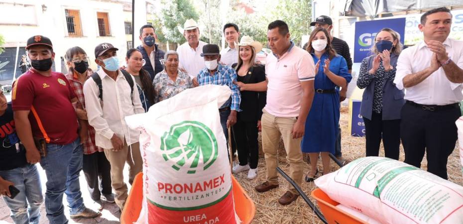 Guanajuato, Gto.- Para beneficiar a productores agrícolas del Municipio ante el alza de costos en fertilizantes, el Gobernador de Guanajuato, Diego Sinhue Rodríguez Vallejo, entregó 45 toneladas a 159 productores capitalinos.