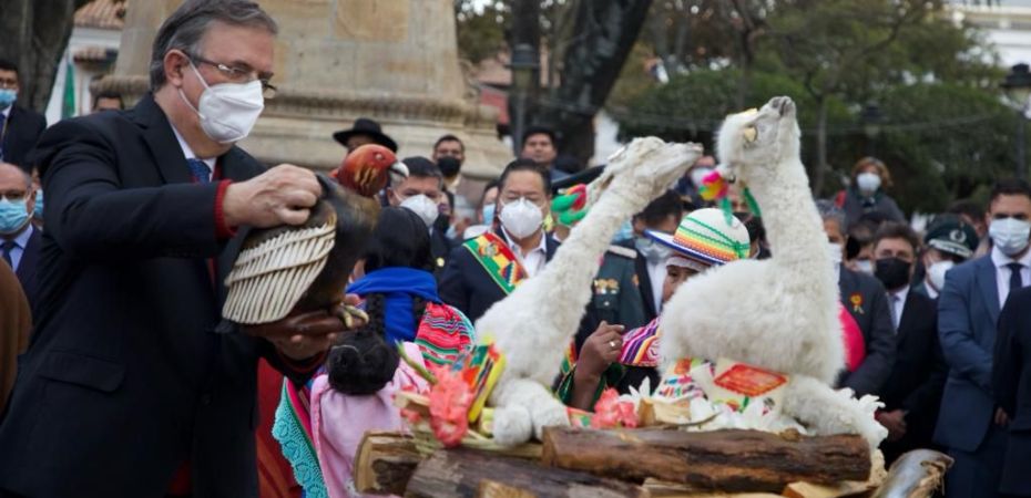 El canciller Ebrard participó en la ceremonia ancestral de ofrenda a la Pachamama que, durante el mes de agosto, es celebrada por las culturas originarias andinas para reforzar y restablecer el vínculo de reciprocidad entre la humanidad y la madre tierra.