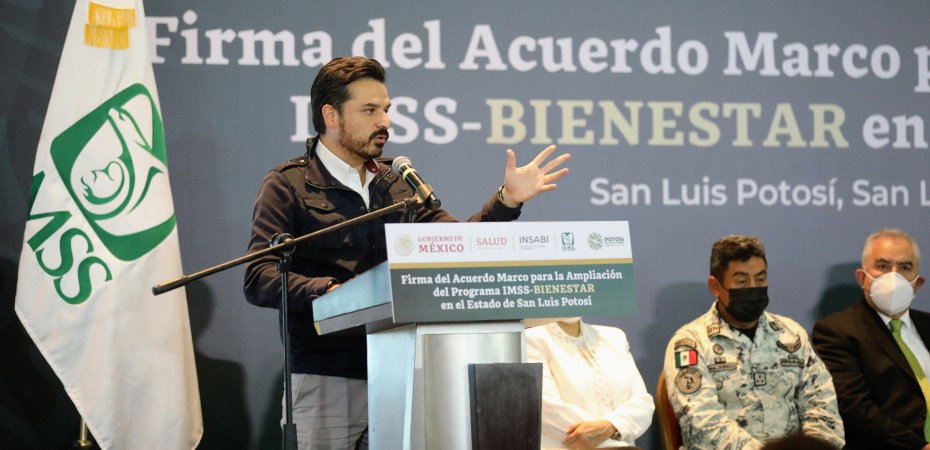 San Luis Potosí, SLP.- Como parte de la transformación de los sistemas de salud estatales, el director general del Instituto Mexicano del Seguro Social (IMSS), Zoé Robledo, y el gobernador de San Luis Potosí, José Ricardo Gallardo Cardona, firmaron el Acuerdo Marco para la Ampliación del Programa IMSS-BIENESTAR en la entidad, a fin de contar con un servicio sanitario de calidad y gratuito para población sin seguridad social.