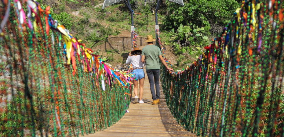 Te preguntarás ¿qué tiene de particular el puente colgante?, una mágica leyenda lo envuelve. Se dice que si escribes tus sueños, deseos o miedos en un listón, lo amarras al barandal del puente y caminas por él hasta cruzarlo, aquellos anhelos que hayas escrito se cumplirán, mientras que los miedos lograrás dejarlos atrás.