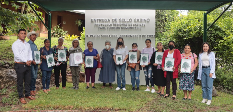 Durante la conferencia se entregaron 11 reconocimientos “Sello Sabino” a microempresas que integran la Red de Servicios Turísticos Comunitarios de la Sierra Gorda, y que demostraron trabajar con altos estándares de calidad en el servicio, higiene y prácticas enfocadas en el cuidado del medio ambiente.