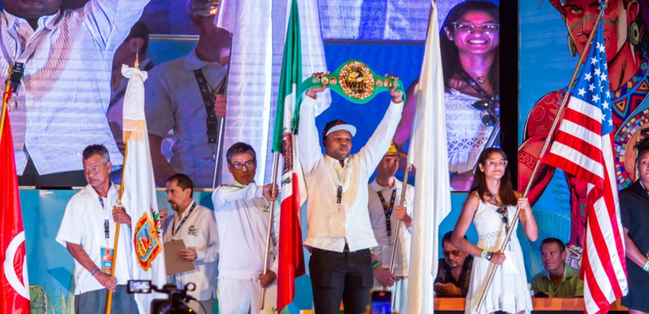 Evelyn Salgado Pineda, Gobernadora de Guerrero; Mauricio Sulaimán Saldívar, presidente del Consejo Mundial del Boxeo y Seyed Rezvani, Director General de Grupo Mundo Imperial, estuvieron en el presídium para dar la bienvenida a todos al gran evento deportivo que estará presente en el complejo de Palacio Mundo Imperial.