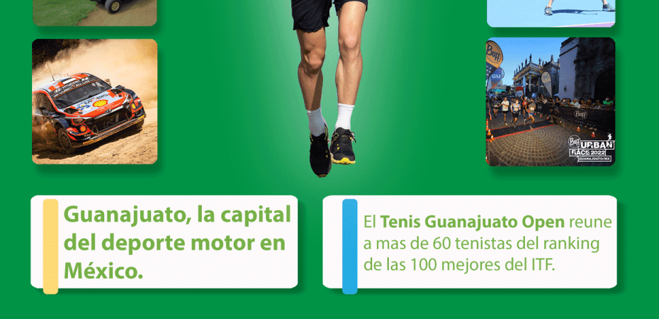 El Estado de Guanajuato se ha convertido, por sus múltiples atractivos, infraestructura y ubicación, en una gran opción dentro del país para ser sede de grandes eventos deportivos, además de brindar la opción de experiencias para quien busca un destino para realizar alguna actividad deportiva.