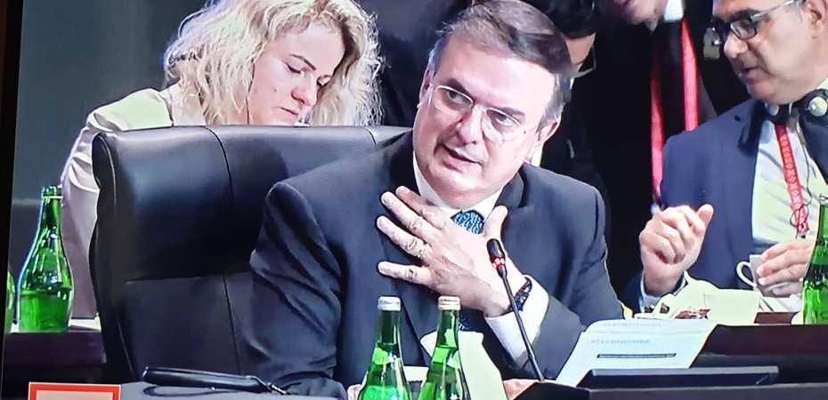 El canciller Marcelo Ebrard Casaubon expuso ante los líderes de las mayores economías del mundo el llamado imperativo de México al cese de la guerra y la preocupación por los recientes bombardeos a la población civil en Ucrania.