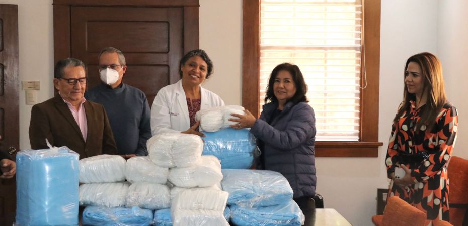 Edda Vite, presidenta del Patronato del Sistema DIF Hidalgo, se reunió Zorayda Robles, titular de la Secretaría de Salud; Oscar Zamora, subsecretario de Administración, Finanzas y Planeación; y Raymundo Martínez, asesor técnico de la Secretaría; para entregar 10 mil batas quirúrgicas y 31 mil cubrebocas que coadyuvarán al desempeño óptimo de las labores de control de riesgos y manejo de residuos o sustancias peligrosas y prevención de contagios derivados del contacto de los profesionales de la salud con agentes biológicos infecciosos.