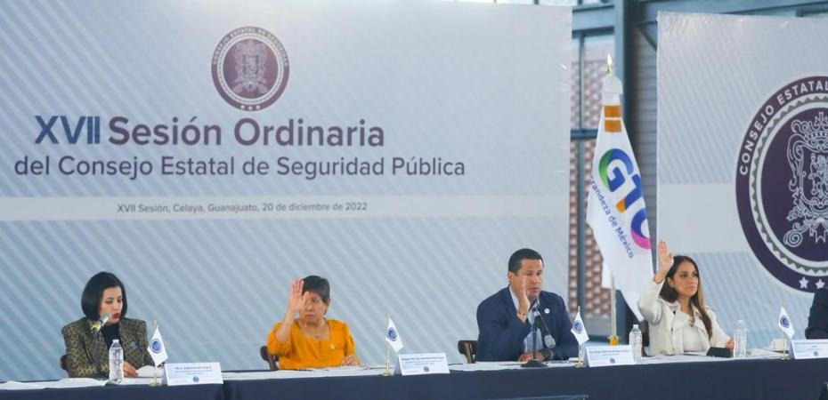 Celaya, Gto..- Durante la XVII Sesión Ordinaria del Consejo Estatal de Seguridad Pública, el Gobernador de Guanajuato, Diego Sinhue Rodríguez Vallejo, ratificó el fortalecimiento de la seguridad estatal con los tres niveles de gobierno.