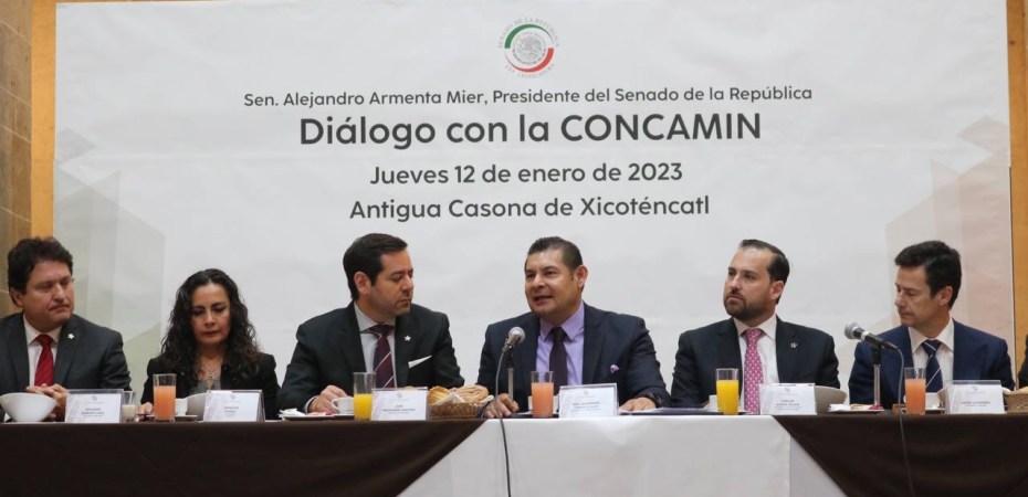 Alejandro Armenta se comprometió a impulsar la discusión de la agenda que plantearon los representantes de la Confederación de Cámaras Industriales, en el siguiente Periodo Ordinario de Sesiones, que incluye temas como el fomento de la competitividad y el crecimiento de las empresas; la optimización en el manejo de recursos no renovables; o la simplificación de trámites administrativos en materia fiscal.
