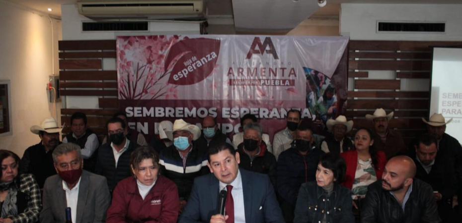 Puebla, Pue.- El presidente del Senado Alejandro Armenta se reunió con mujeres y hombres del campo, agricultores, productores, ejidatarios e ingenieros agrónomos del estado de Puebla.