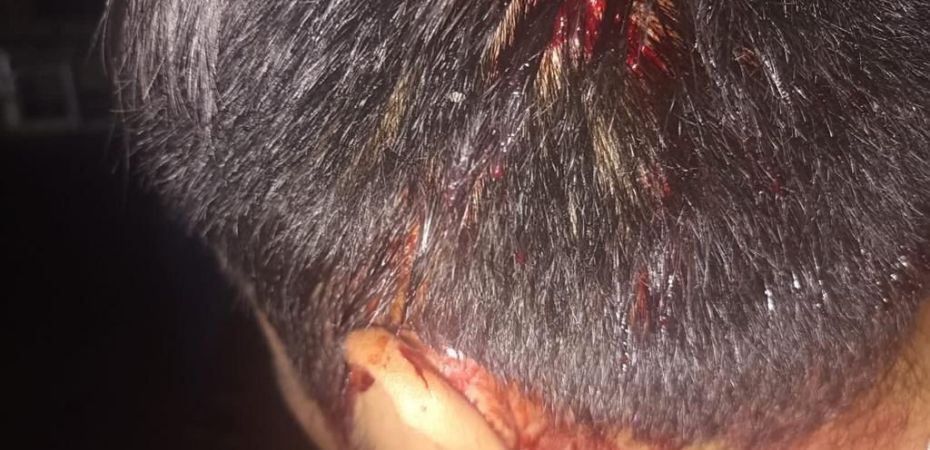 Tras que concluyera la marcha en el centro histórico de la ciudad, no conformes, personas de grupos de choque hirieron fuertemente a un policía que se encontraba realizando su labor utilizando un objeto contra su cabeza provocando que el uniformado sangrara.