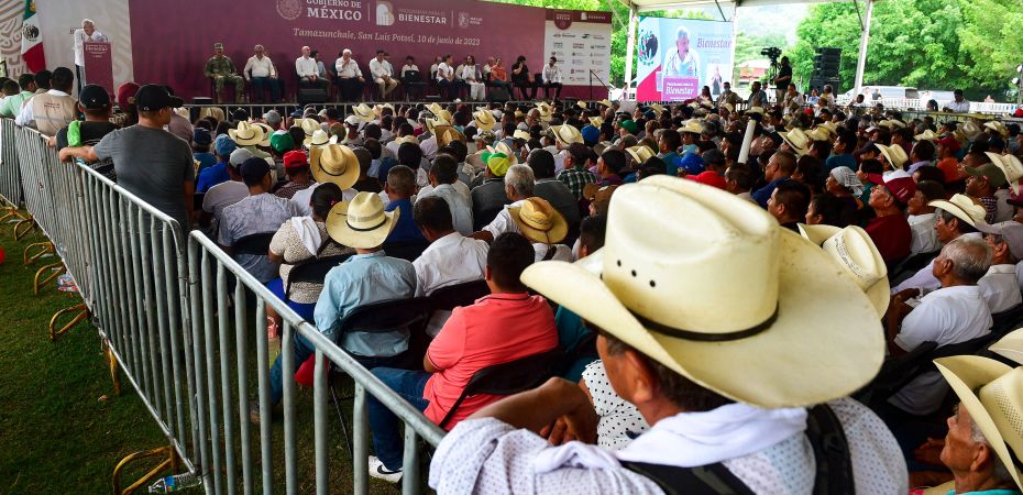 Ante el gobernador Ricardo Gallardo Cardona, miembros del gabinete y Servidores de la Nación, Villalobos Arámbula expresó que a las familias pobres de los territorios rurales, ejidos y comunidades indígenas, agricultores y pequeños propietarios, el Gobierno de México les hace justicia con estos beneficios a los cuales tienen derecho, pero se les habían negado por décadas.