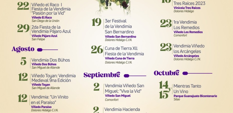*Las Vendimias de Guanajuato 2023 se llevarán a cabo del 15 de julio al 15 de octubre