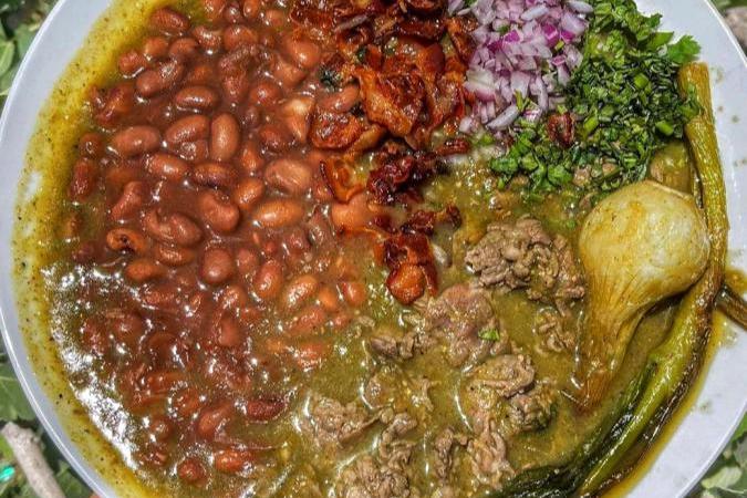El resultado es un plato reconfortante y lleno de sabor, que se sirve caliente acompañado de frijoles y un toque de cilantro fresco para realzar sus matices. La combinación de los ingredientes resulta en una armonía ideal, donde lo suculento de la carne se mezcla con la textura suave de los frijoles y la frescura del cilantro, brindando una experiencia gastronómica única y memorable.