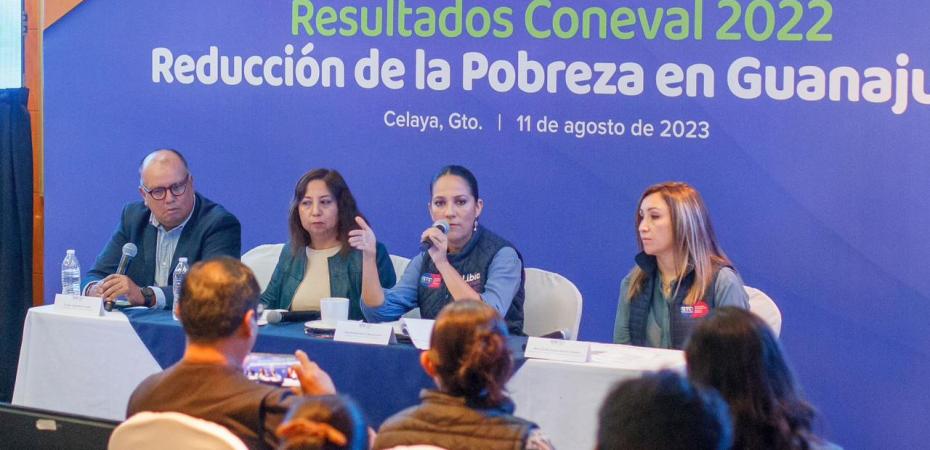 Celaya, Guanajuato.- La secretaria de Desarrollo Social y Humano (SEDESHU), Libia Dennise García dio a conocer los resultados de la medición multidimensional de la pobreza por parte del Consejo Nacional de Evaluación de la Política de Desarrollo Social (CONEVAL), correspondientes a Guanajuato durante el año 2022.