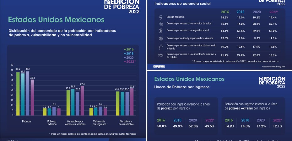 *Desde el inicio de esta administración, la población que vive en la pobreza y la desigualdad se redujo 21 por ciento, de acuerdo con el CONEVAL