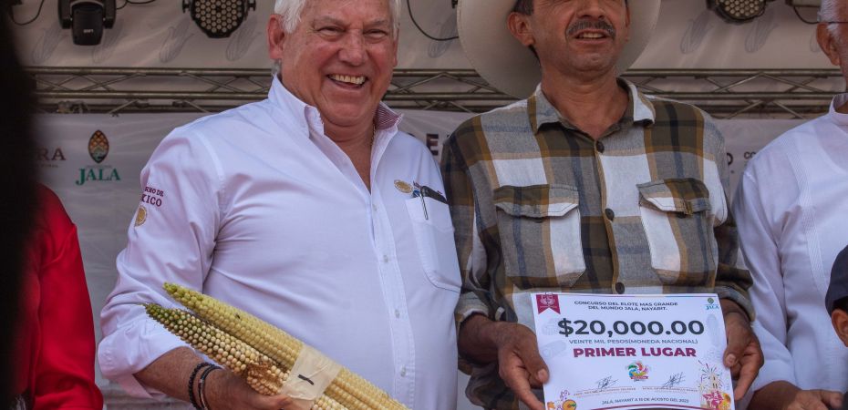 El secretario Villalobos Arámbula, el gobernador Miguel Ángel Navarro Quintero y el coordinador general de Programas para el Bienestar, Carlos Torres Rosas, entregaron el primer lugar a Óscar Saúl Elías Pérez, con un elote de 49 centímetros; el segundo a José Ismael Elías Pérez, con una mazorca de 47.5 centímetros, y el tercer lugar a Isair Manuel Elías Delgado, con una pieza de 45 centímetros.