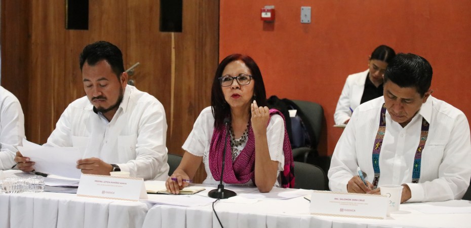 *La secretaria de Educación Pública, Leticia Ramírez, y el gobernador Salomón Jara, presiden mesa de trabajo con dirigencia y comisiones de la Sección 22 del SNTE
