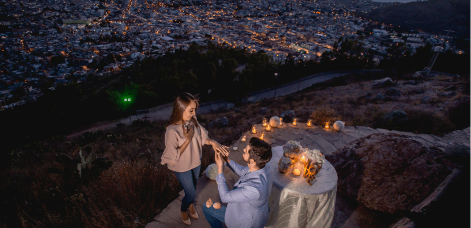 La Mina San Bernabé, una de las más antiguas en Zacatecas, ofrece un tour romántico, en el que se pueden realizar cenas románticas, pedidas de mano, celebrar aniversarios, o simplemente pasar un momento romántico. Su peculiar socavón a cielo abierto, rodeado por formaciones geológicas impactantes, lo hace un escenario único que podrá ser testigo de ese día tan importante. Este tour incluye un viaje en moto 4×4, una fogata en el atardecer, una botella de vino tinto y charola de canapés (quesos y carnes frías).