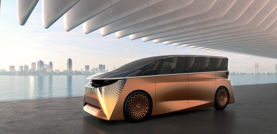 El exterior transmite directamente una sensación de comodidad interior, está compuesto por paneles de carrocería lisos y líneas de carácter afiladas que demuestran la belleza tradicional japonesa y un imponente aspecto armónico con el entorno. Los laterales fluyen en diagonal desde la parte delantera hasta la defensa trasera para lograr un mayor rendimiento aerodinámico y la impresión de suavidad de conducción resultante de la combinación de vehículo eléctrico y conducción autónoma. La línea de cintura sirve como faro y lámpara distintiva, mientras que las llantas con diseño kumiko y la línea suave y recta de la carrocería crean una sensación premium.