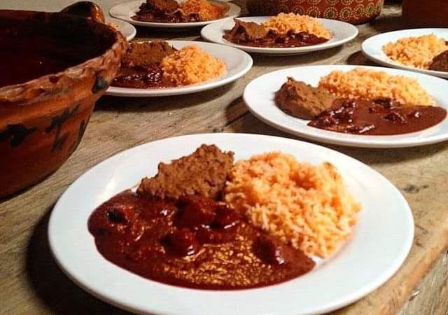 Es, sin duda, uno de los platos más representativos de Zacatecas; se trata de carne de puerco a la que se agrega a una especie de mole rojo hecho con la mezcla de varios chiles, nuez, almendra, pasas, canela, laurel, hasta el jugo de la naranja y chocolate, para darle un sabor dulce único; se sirve con arroz y frijoles. Este es uno de los platillos más populares en celebraciones importantes como XV años o como bien dice su nombre, en bodas.
