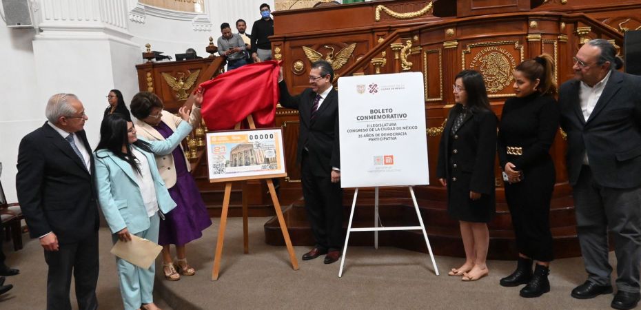En el marco del programa cultural del Congreso de la Ciudad de México, se llevó a cabo la develación del billete del Sorteo Mayor No. 3911, con el que Lotería Nacional conmemora los 35 años de Actividad Legislativa en la Ciudad de México.
