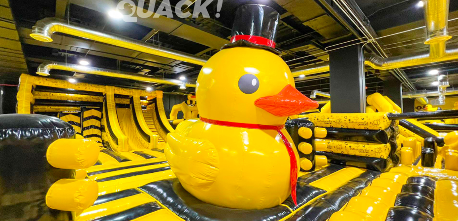 *Retos por superar contra otros competidores y contra reloj, resbaladillas y patos por todas partes es como el parque indoor Inflalandia Quack! de ubica en Encuentro Oceanía